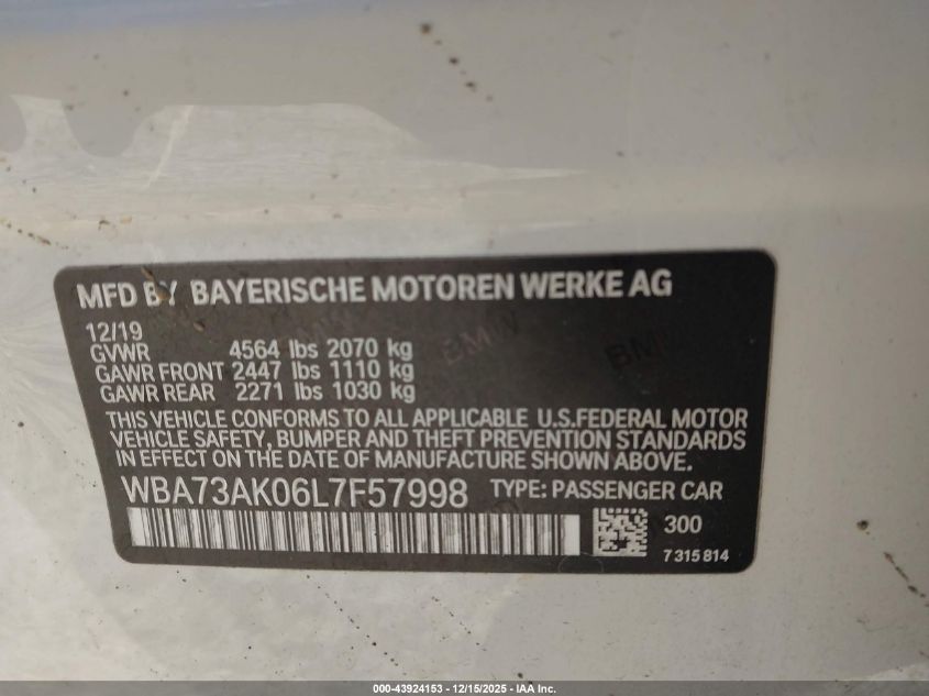 2020 BMW 2 SERIES GRAN COUPE - WBA73AK06L7F57998, цвет - , 2.0, Бензин, Полный привод из США