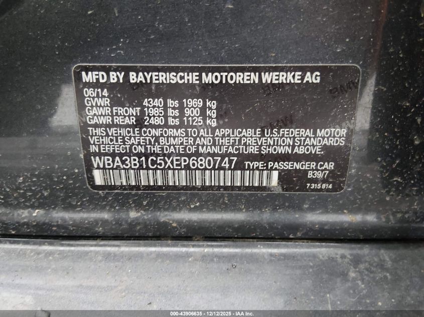 2014 BMW 3 SERIES - WBA3B1C5XEP680747, цвет - Серый, 2.0, Бензин, Задний привод из США