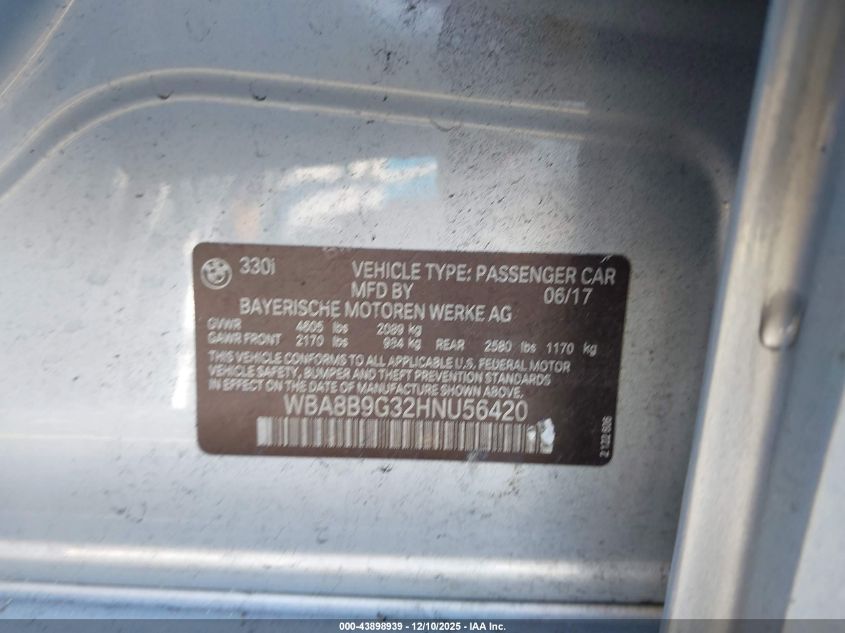 2017 BMW 3 SERIES - WBA8B9G32HNU56420, цвет - Серебряный, 2.0, Бензин, Задний привод из США