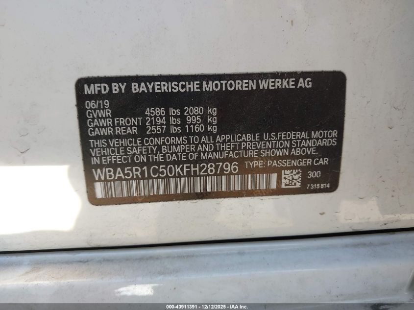 2019 BMW 3 SERIES - WBA5R1C50KFH28796, цвет - Белый, 2.0, Бензин, Задний привод из США