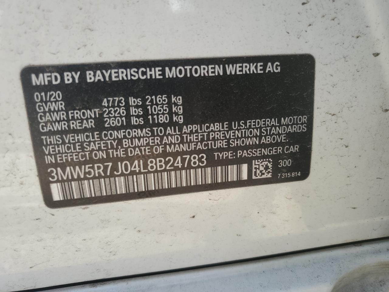 2020 BMW 3 SERIES - 3MW5R7J04L8B24783, цвет - Белый, 2.0, Бензин, Полный привод из США