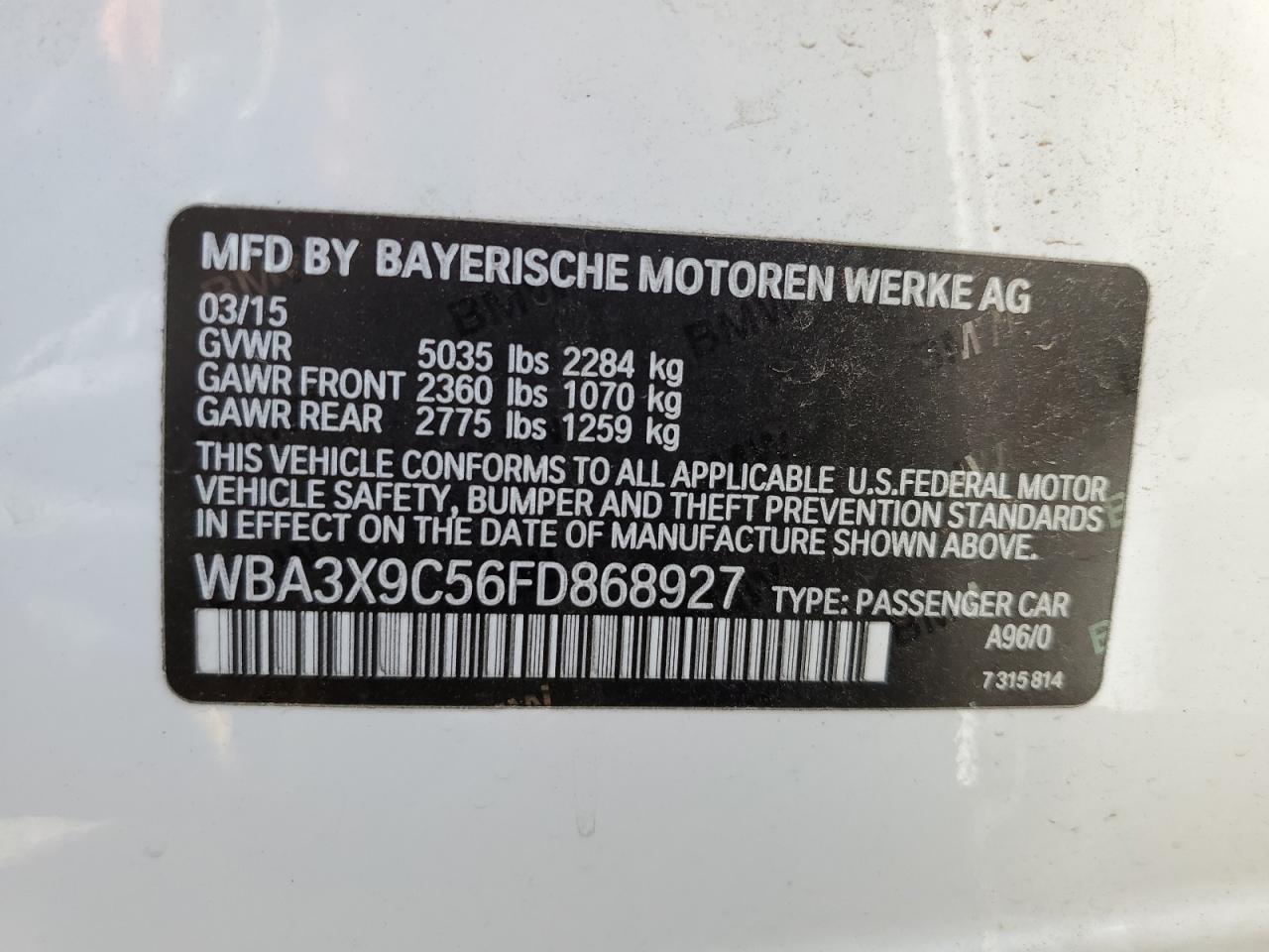2015 BMW 3 SERIES GT - WBA3X9C56FD868927, цвет - Белый, 3.0, Бензин, Полный привод из США