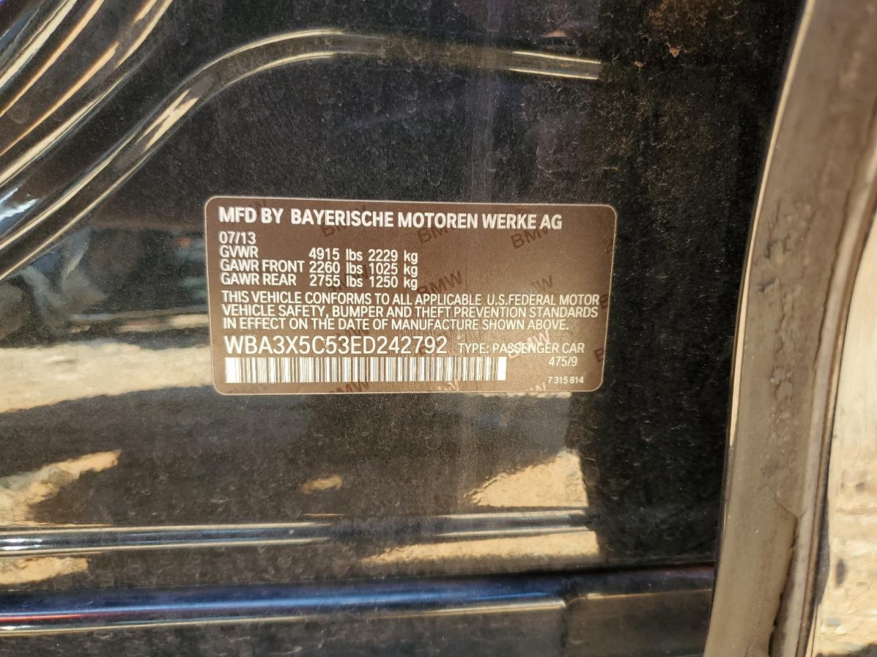 2014 BMW 3 SERIES GT - WBA3X5C53ED242792, цвет - Черный, 2.0, Бензин, Полный привод из США