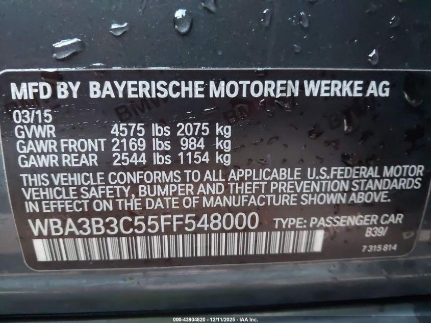 2015 BMW 3 SERIES - WBA3B3C55FF548000, цвет - Серый, 2.0, Бензин, Полный привод из США
