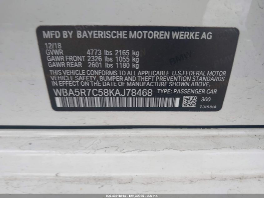 2019 BMW 3 SERIES - WBA5R7C58KAJ78468, цвет - Белый, 2.0, Бензин, Полный привод из США
