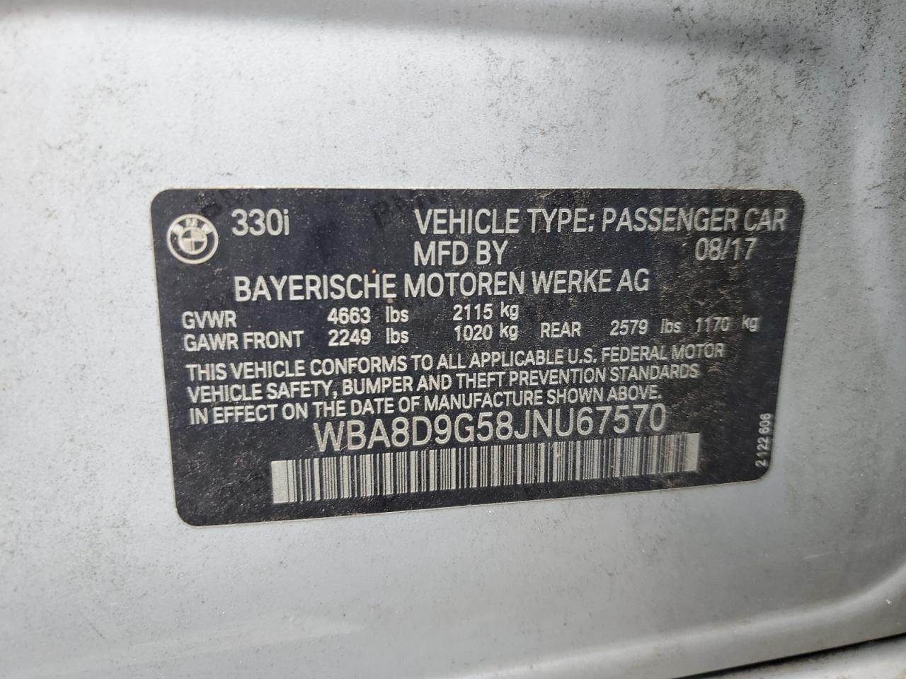 2018 BMW 3 SERIES - WBA8D9G58JNU67570, цвет - Серый, 2.0, Бензин, Полный привод из США