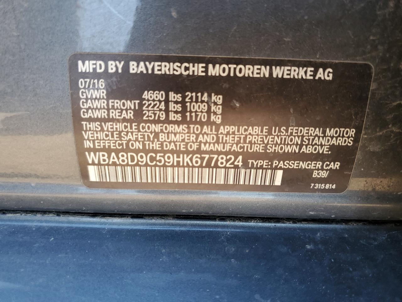 Цвет СерыйЦилиндры 4Привод Полный приводVIN WBA8D9C59HK677824Состояние Заводится и едет (проверено)