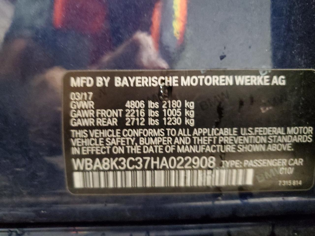 2017 BMW 3 SERIES - WBA8K3C37HA022908, цвет - Синий, 2.0, Бензин, Полный привод из США