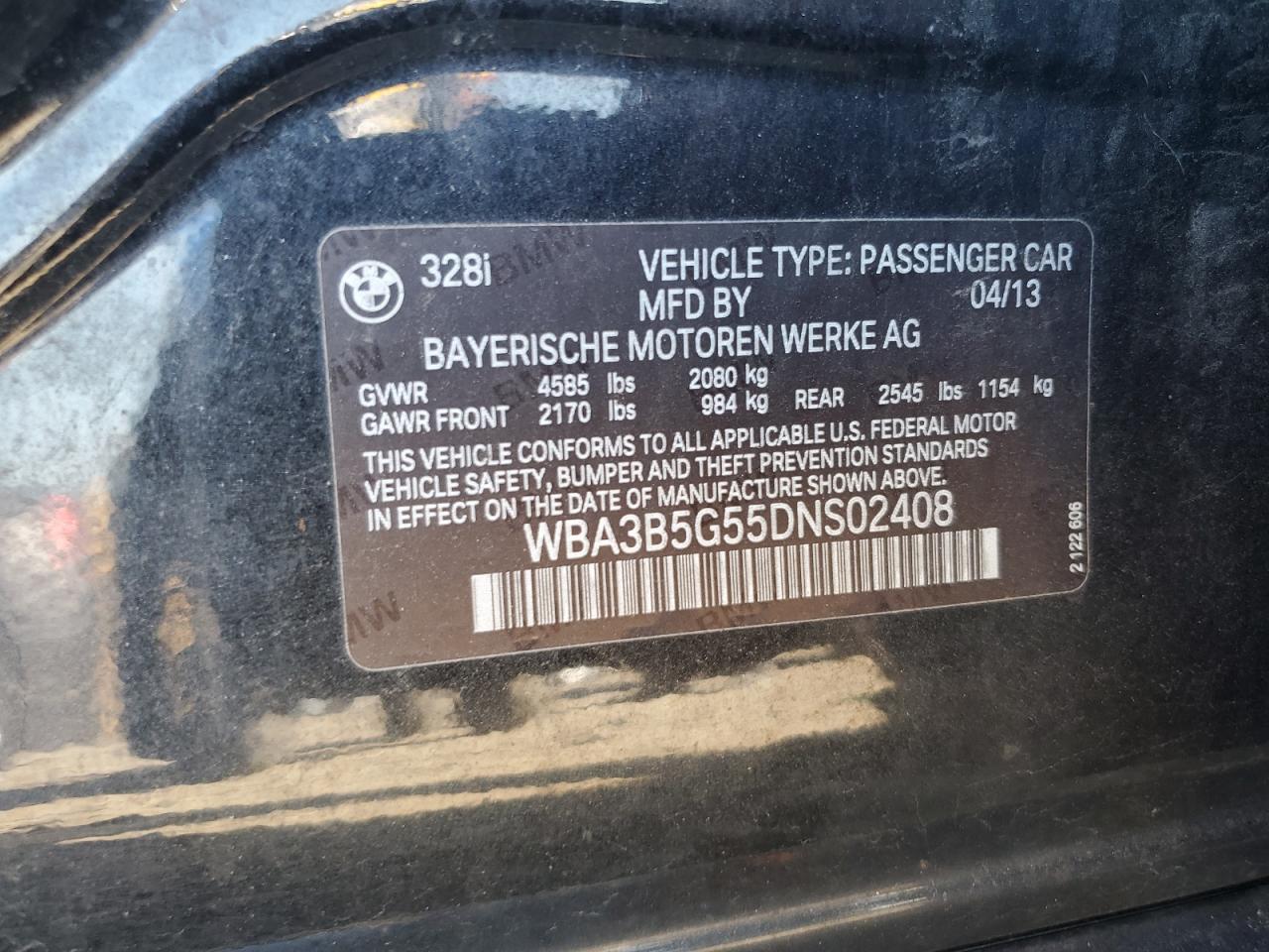 2013 BMW 3 SERIES - WBA3B5G55DNS02408, цвет - Черный, 2.0, Бензин, Полный привод из США