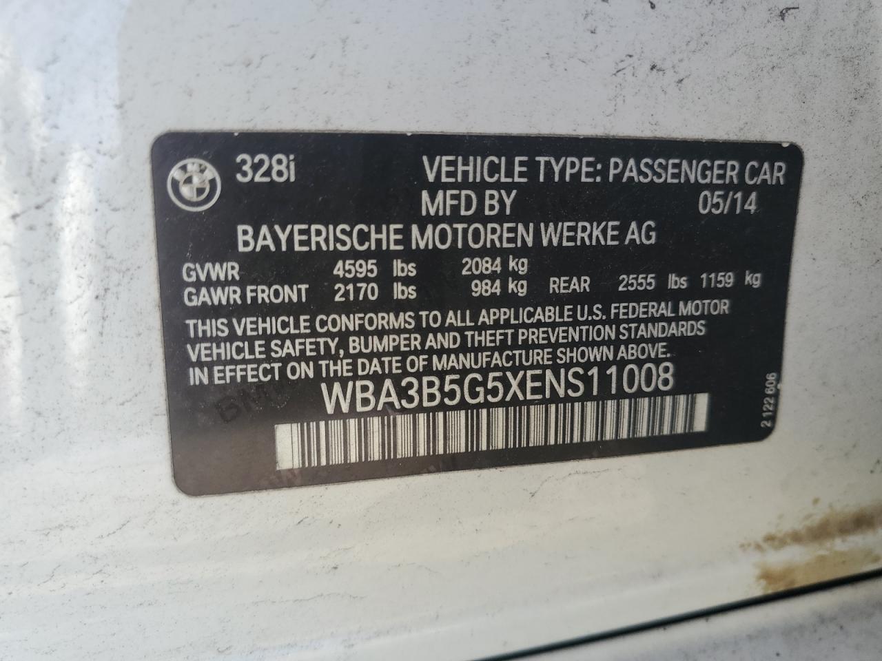 2014 BMW 3 SERIES - WBA3B5G5XENS11008, цвет - Белый, 2.0, Бензин, Полный привод из США