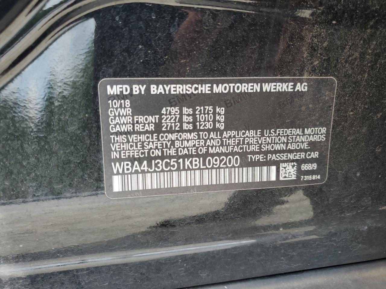 2019 BMW 4 SERIES GRAN COUPE - WBA4J3C51KBL09200, цвет - Черный, 2.0, Бензин, Полный привод из США