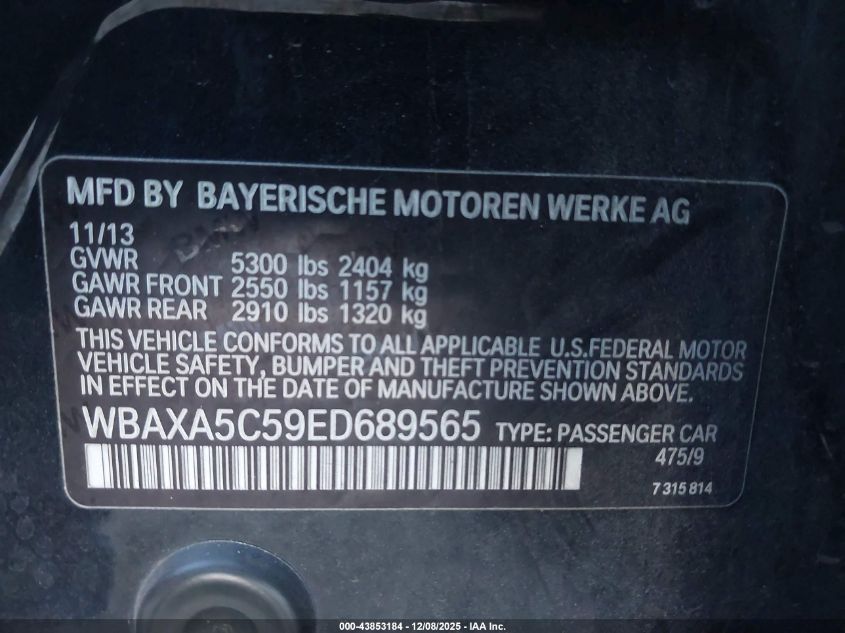 2014 BMW 5 SERIES - WBAXA5C59ED689565, цвет - Черный, 3.0, Дизель, Задний привод из США
