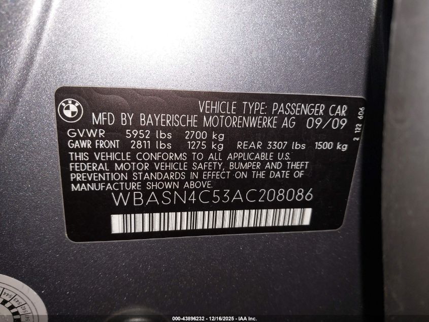 2010 BMW 5 SERIES GT - WBASN4C53AC208086, цвет - , 4.4, Бензин, Задний привод из США