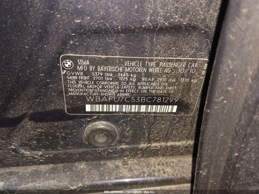 2011 BMW 5 SERIES - WBAFU7C53BC781299, цвет - Серый, 3.0, Бензин, Полный привод из США
