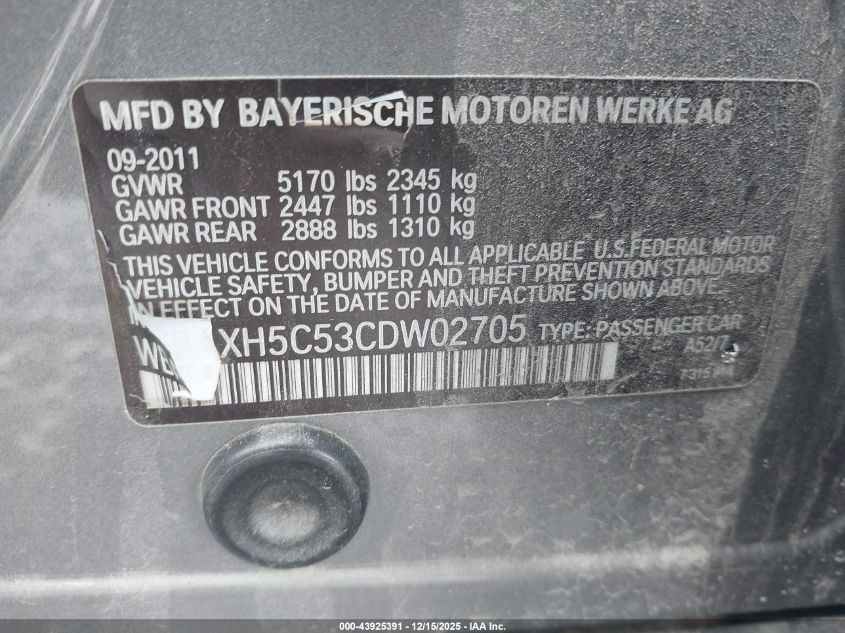 2012 BMW 5 SERIES - WBAXH5C53CDW02705, цвет - , 2.0, Бензин, Полный привод из США