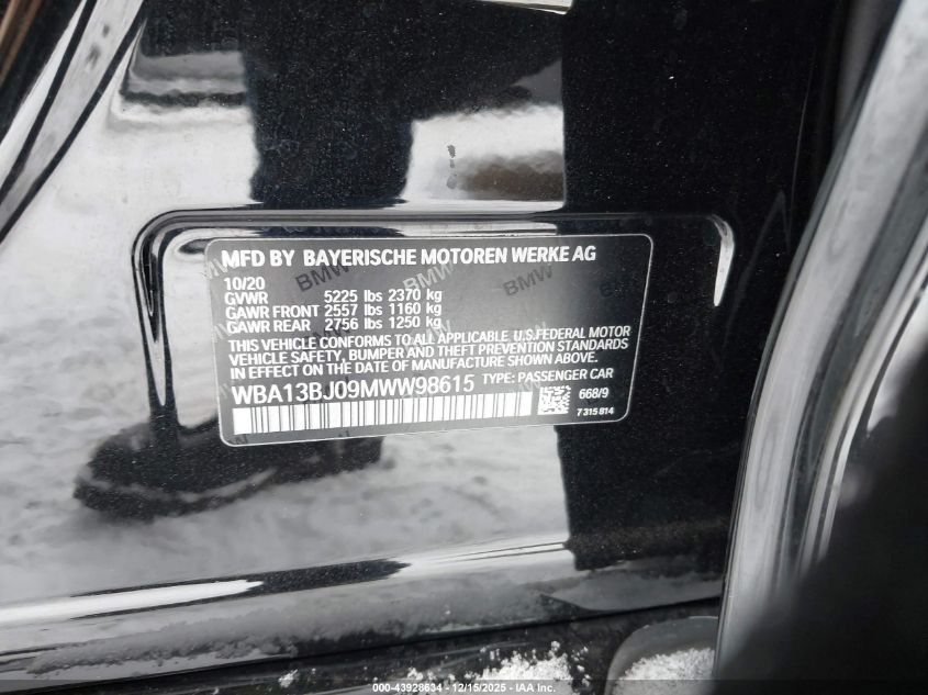 2021 BMW 5 SERIES - WBA13BJ09MWW98615, цвет - Черный, 2.0, Бензин, Полный привод из США