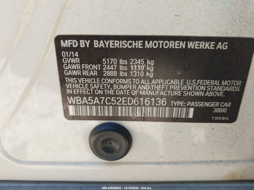 2014 BMW 5 SERIES - WBA5A7C52ED616136, цвет - Белый, 2.0, Бензин, Полный привод из США