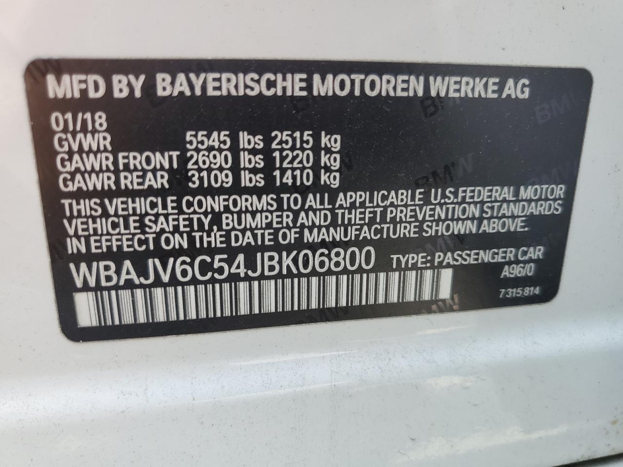 2018 BMW 6 SERIES GT - WBAJV6C54JBK06800, цвет - Белый, 3.0, Бензин, Полный привод из США