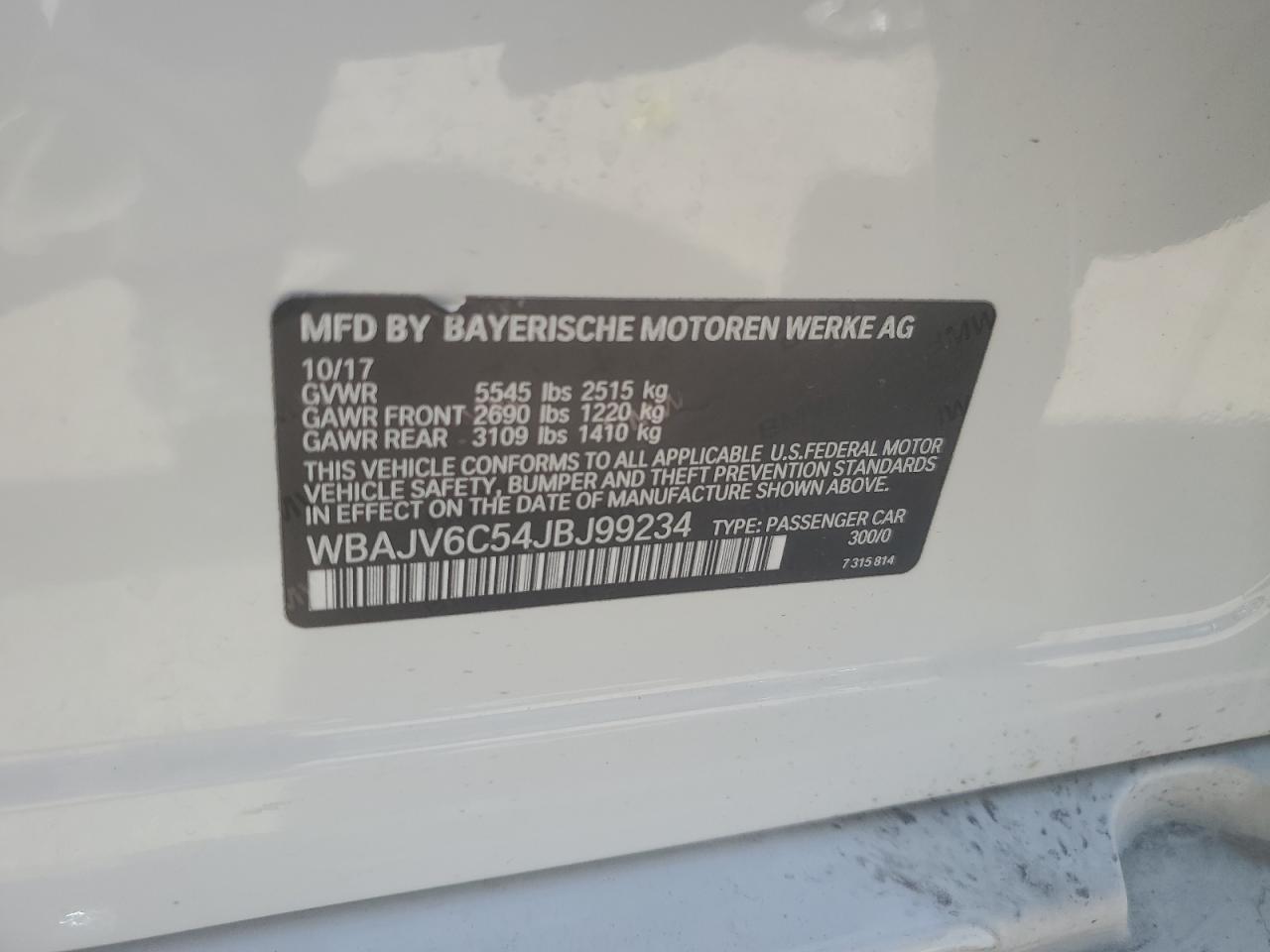 2018 BMW 6 SERIES GT - WBAJV6C54JBJ99234, цвет - Белый, 3.0, Бензин, Полный привод из США