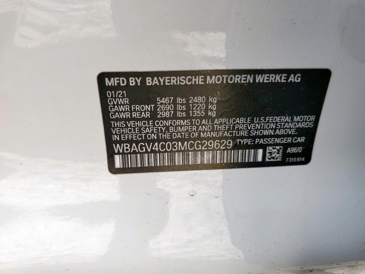 2021 BMW 8 SERIES - WBAGV4C03MCG29629, цвет - Белый, 3.0, Бензин, Полный привод из США