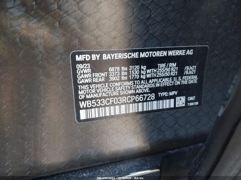 2024 BMW IX - WB533CF03RCP66728, цвет - Серый, U, Электрический, Полный привод из США