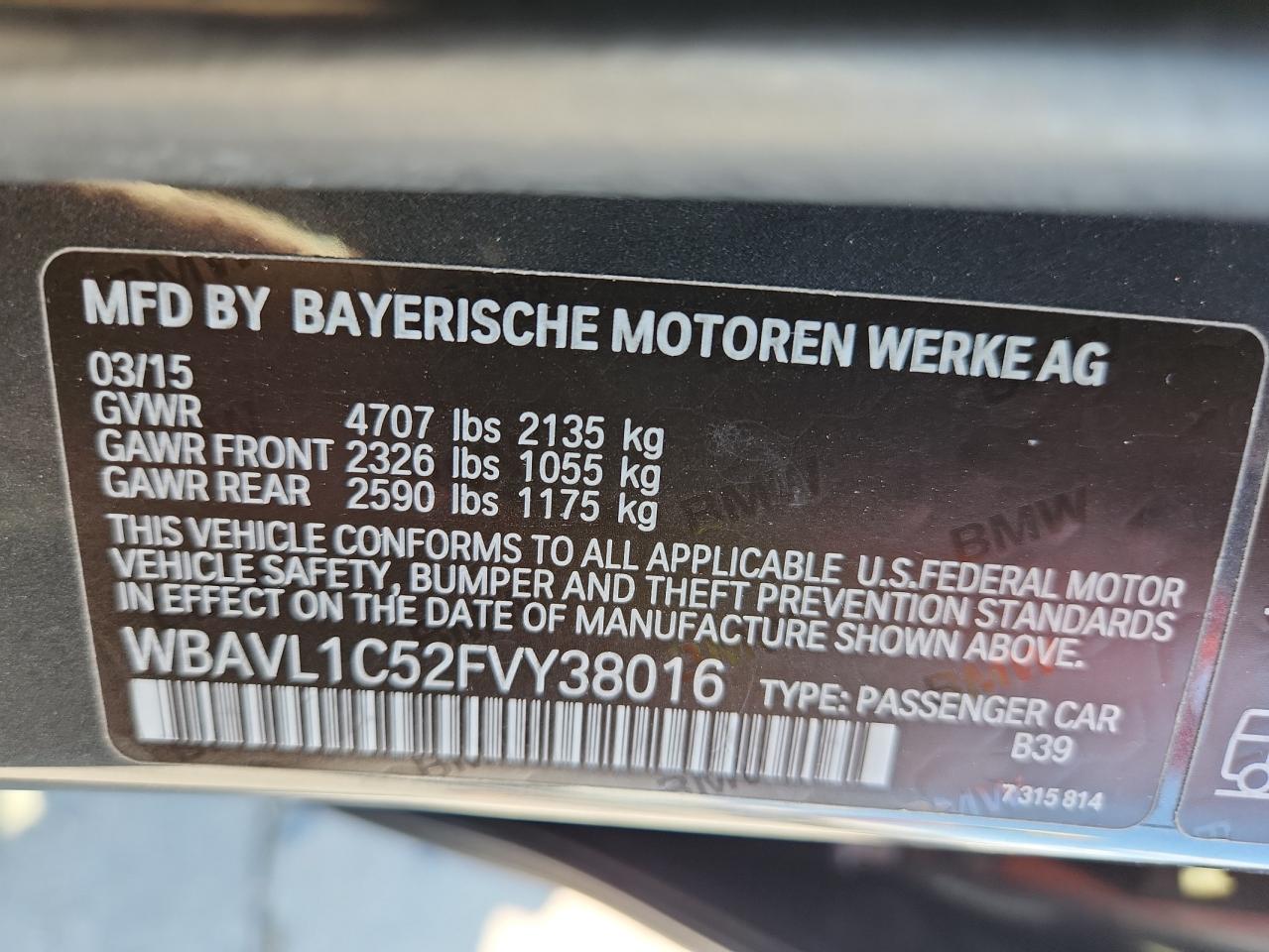 Цвет Древесный угольЦилиндры 4Привод Полный приводVIN WBAVL1C52FVY38016Состояние Заводится и едет (проверено)Повреждения Передняя или задняяДата аукциона 2025-10-08