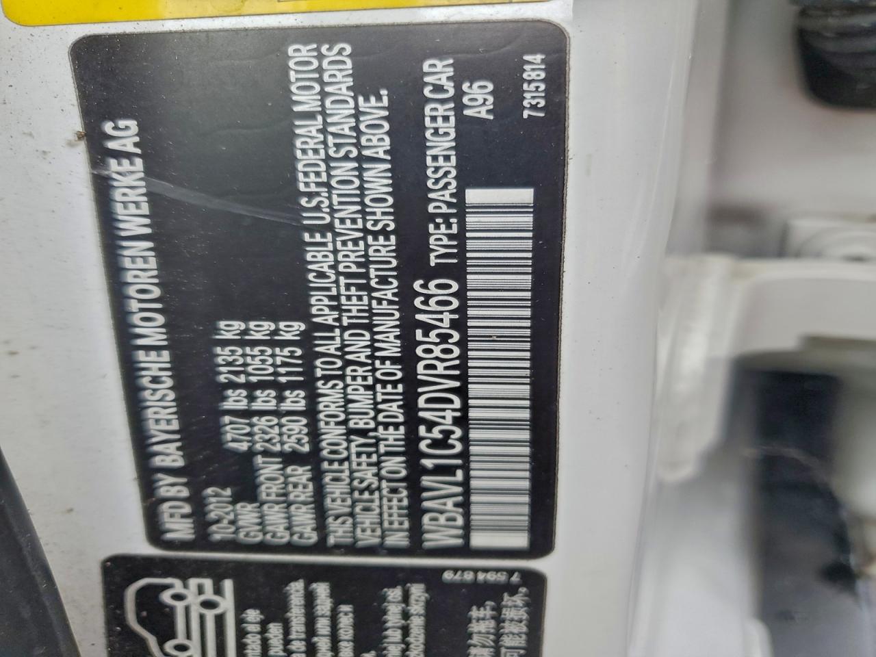 Цвет БелыйЦилиндры 4Привод Полный приводVIN WBAVL1C54DVR85466Состояние Заводится и едет (проверено)Повреждения Обычный износДата аукциона 2025-12-19