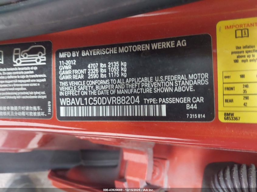 2013 BMW X1 - WBAVL1C50DVR88204, цвет - Апельсиновый, 2.0, Бензин, Полный привод из США