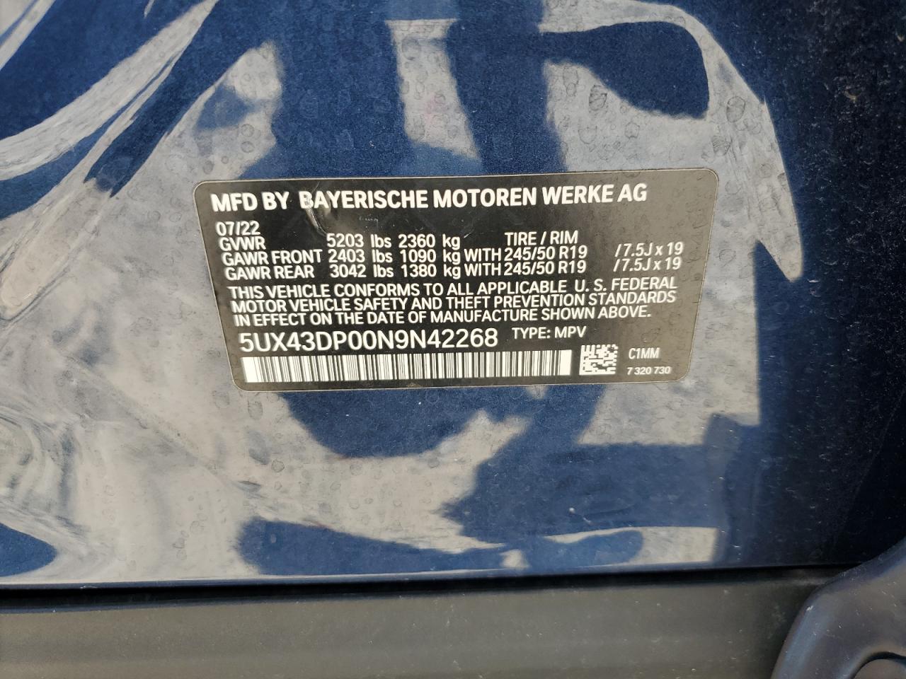2022 BMW X3 - 5UX43DP00N9N42268, цвет - Синий, 2.0, Бензин, Задний привод из США