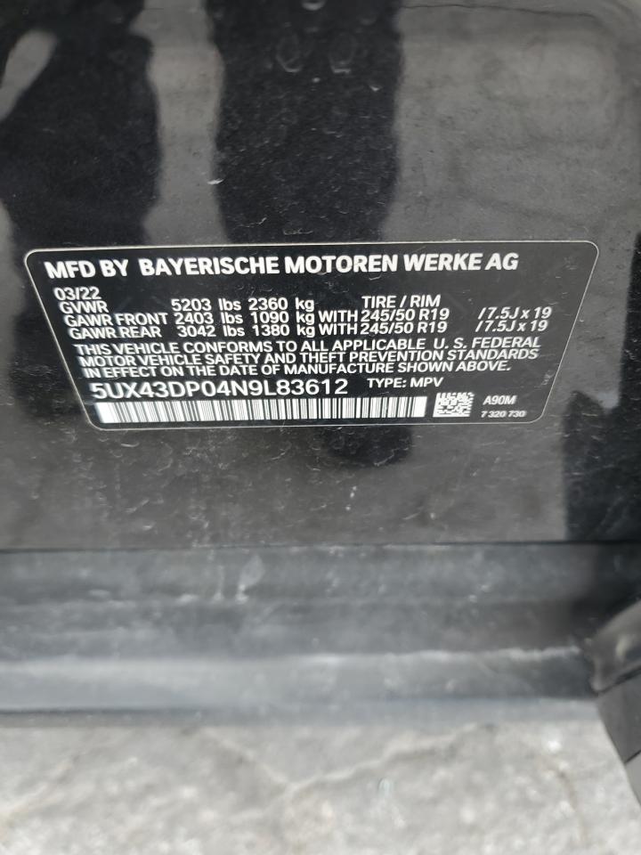 2022 BMW X3 - 5UX43DP04N9L83612, цвет - Серый, 2.0, Бензин, Задний привод из США