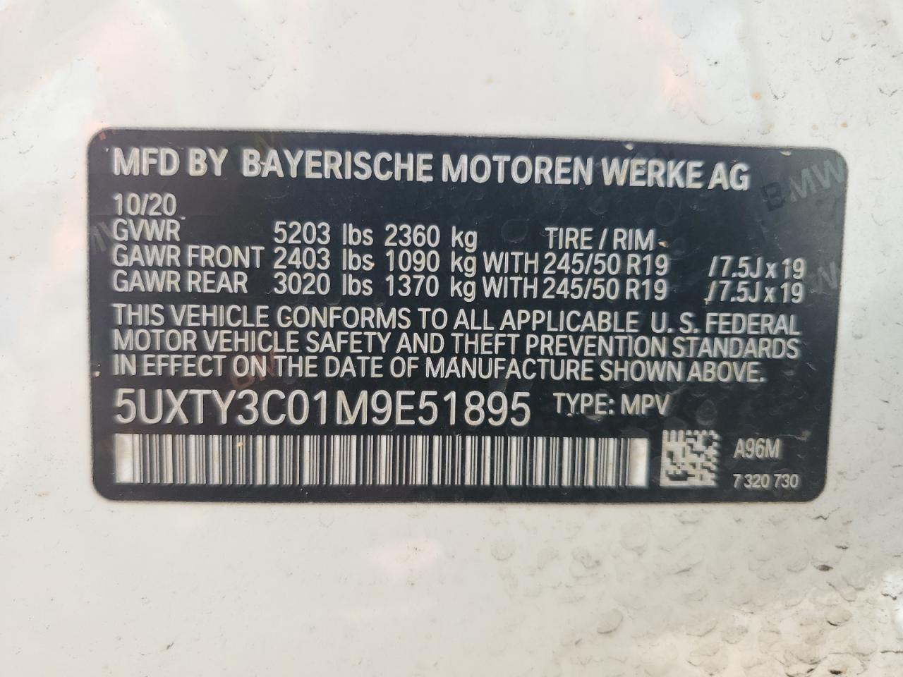 2021 BMW X3 - 5UXTY3C01M9E51895, цвет - Белый, 2.0, Бензин, Задний привод из США