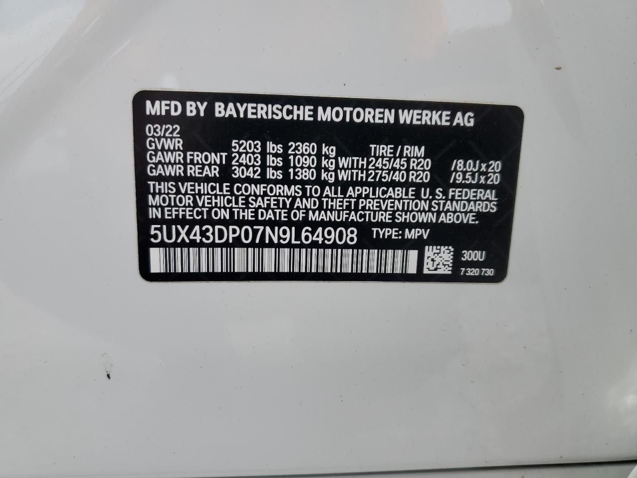 2022 BMW X3 - 5UX43DP07N9L64908, цвет - Белый, 2.0, Бензин, Задний привод из США