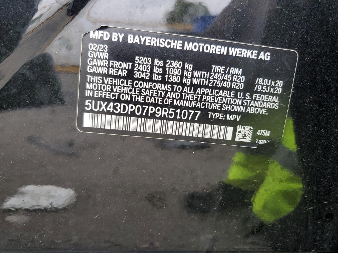 2023 BMW X3 - 5UX43DP07P9R51077, цвет - Черный, 2.0, Бензин, Задний привод из США