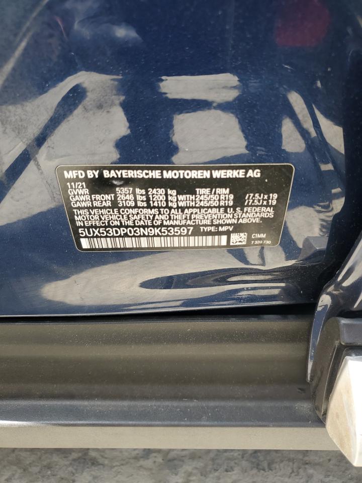 2022 BMW X3 - 5UX53DP03N9K53597, цвет - Синий, 2.0, Бензин, Полный привод из США