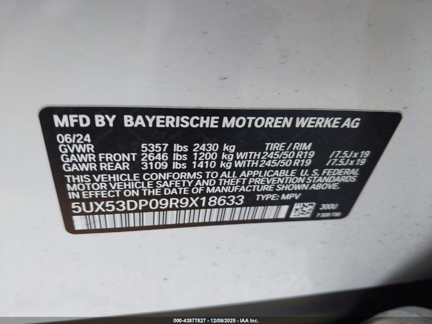 2024 BMW X3 - 5UX53DP09R9X18633, цвет - Белый, 2.0, Бензин, Полный привод из США