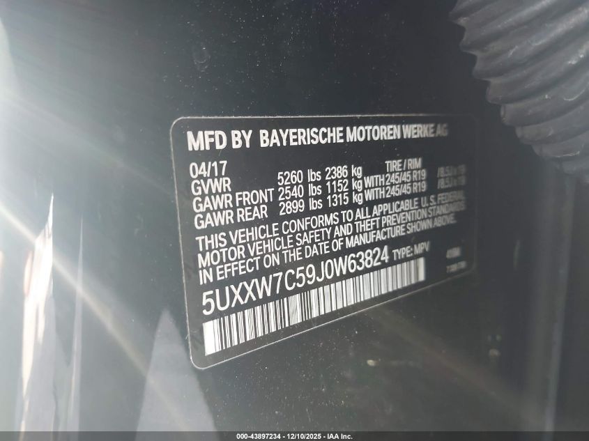 Цвет ЧерныйЦилиндры 6Привод Полный приводVIN 5UXXW7C59J0W63824Состояние Заводится и едет (проверено)Повреждения Передняя левая