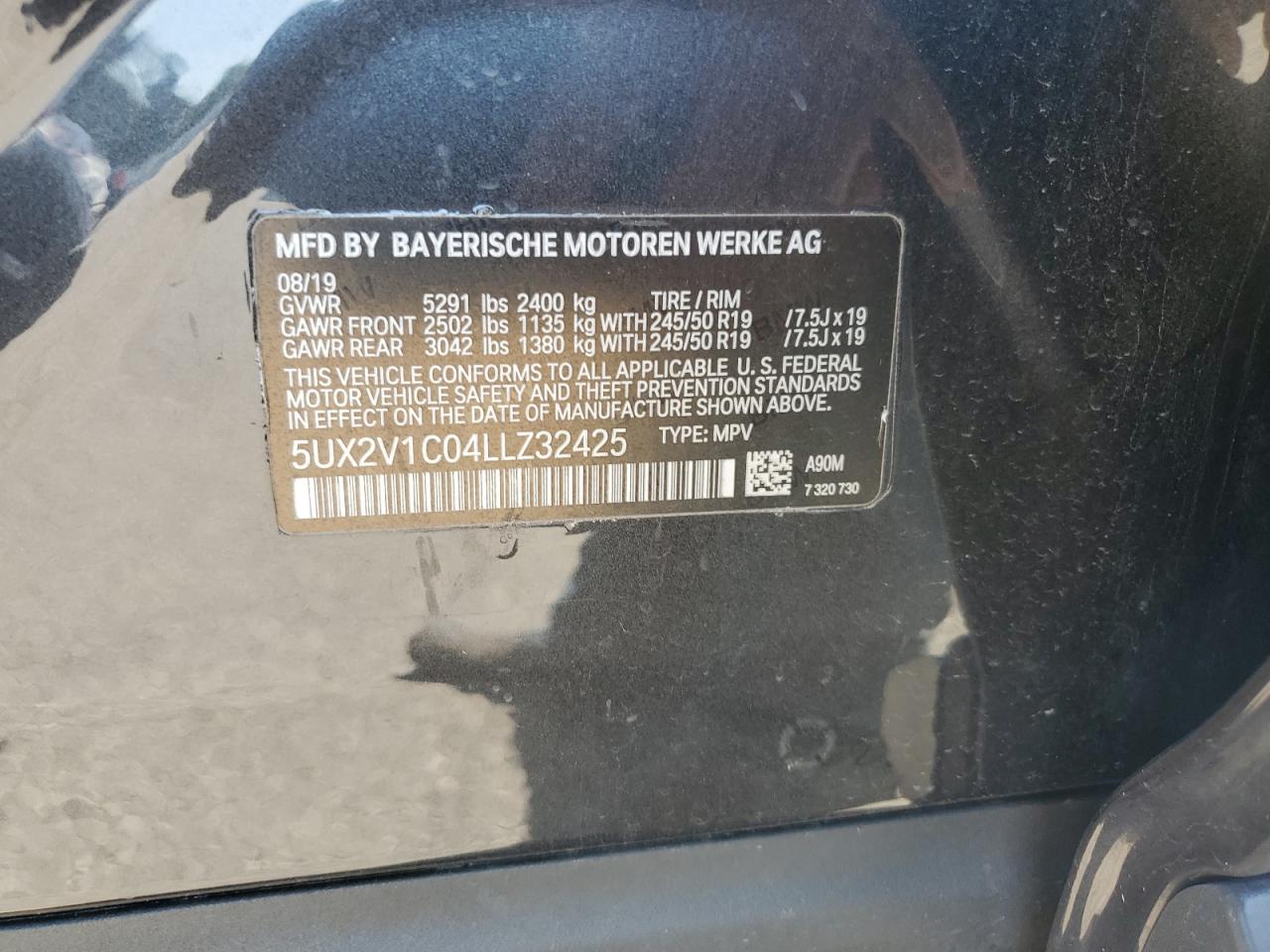 2020 BMW X4 - 5UX2V1C04LLZ32425, цвет - Древесный уголь, 2.0, Бензин, Полный привод из США