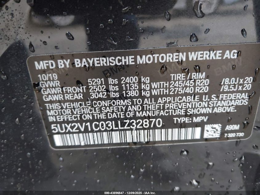 2020 BMW X4 - 5UX2V1C03LLZ32870, цвет - Серый, 2.0, Бензин, Полный привод из США