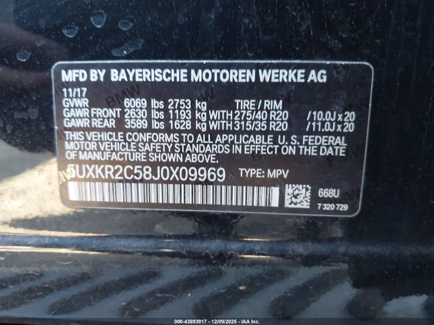 Цвет ЧерныйЦилиндры 6VIN 5UXKR2C58J0X09969Состояние Заводится и едет (проверено)Повреждения Из-за непогодыДата аукциона 2025-12-22