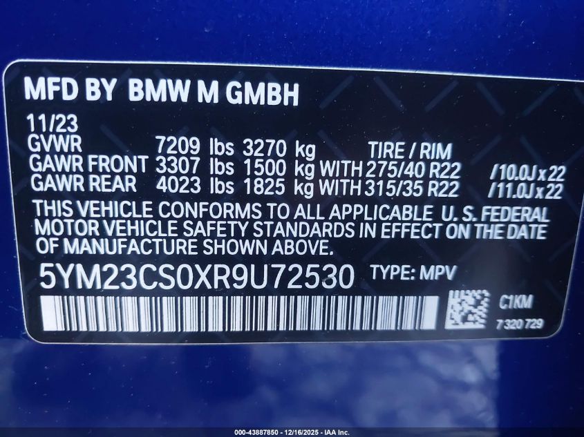 2024 BMW XM - 5YM23CS0XR9U72530, цвет - , 4.4, Гибрид, Полный привод из США