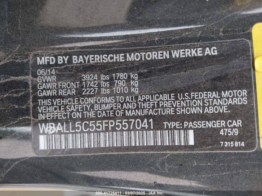 Цвет ЧерныйЦилиндры 4Привод Задний приводVIN WBALL5C55FP557041Состояние Заводится и едет (проверено)Повреждения Передняя или задняяДата аукциона 2025-10-14