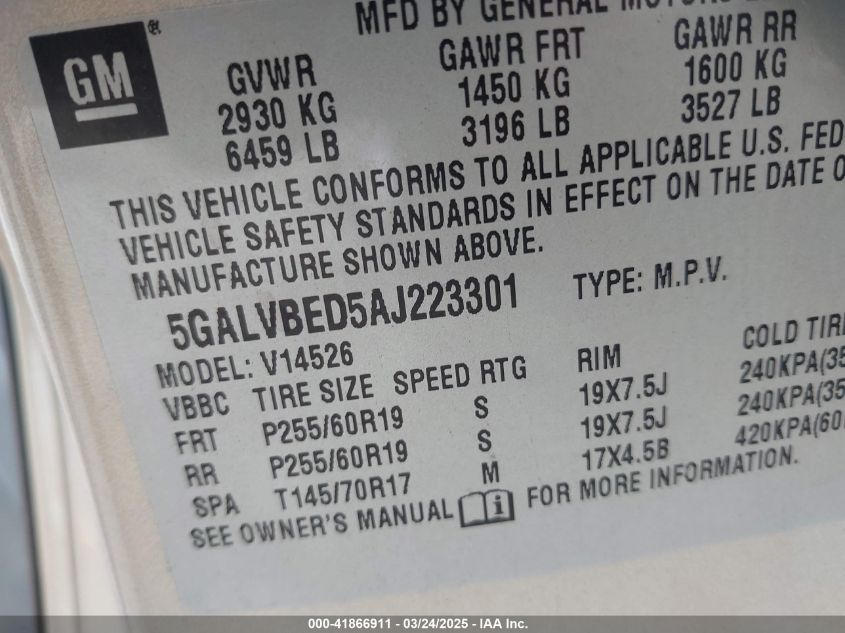2010 BUICK ENCLAVE - 5GALVBED5AJ223301, цвет - Шампань, 3.6, Бензин, Полный привод из США