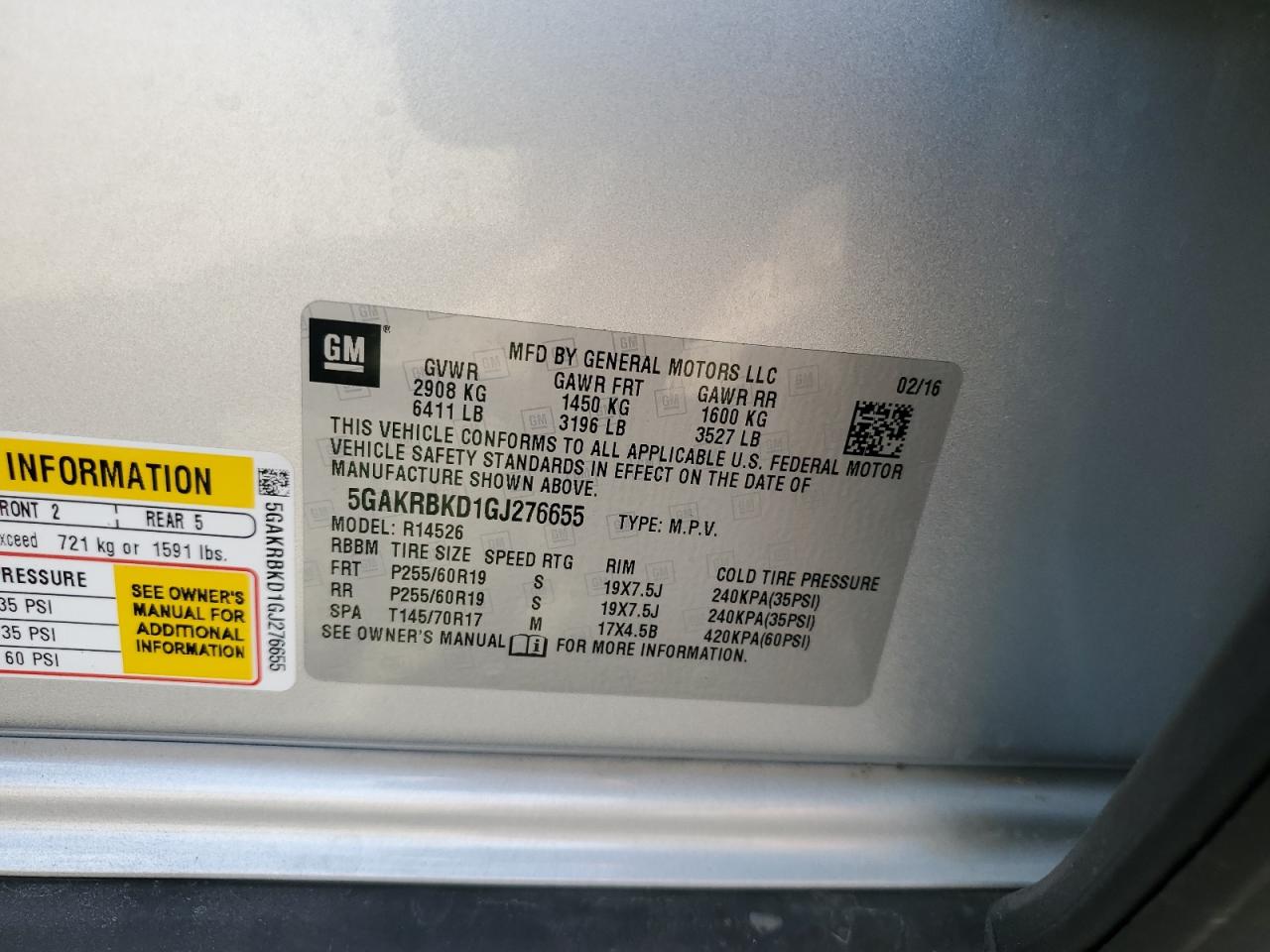 Цвет СеребряныйЦилиндры 6VIN 5GAKRBKD1GJ276655Состояние НеизвестноПовреждения По всему авто
