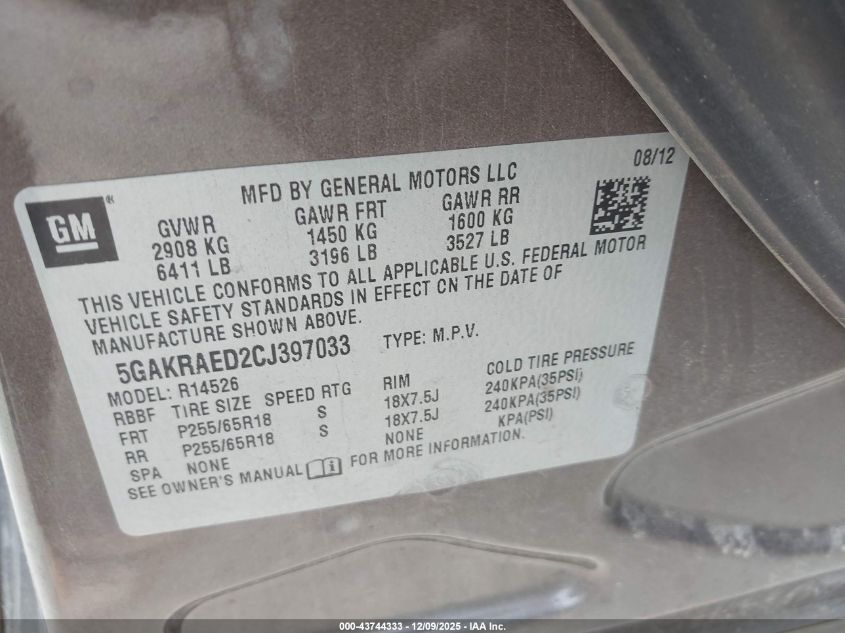 2012 BUICK ENCLAVE - 5GAKRAED2CJ397033, цвет - Коричневий, 3.6, Бензин, Передний привод из США