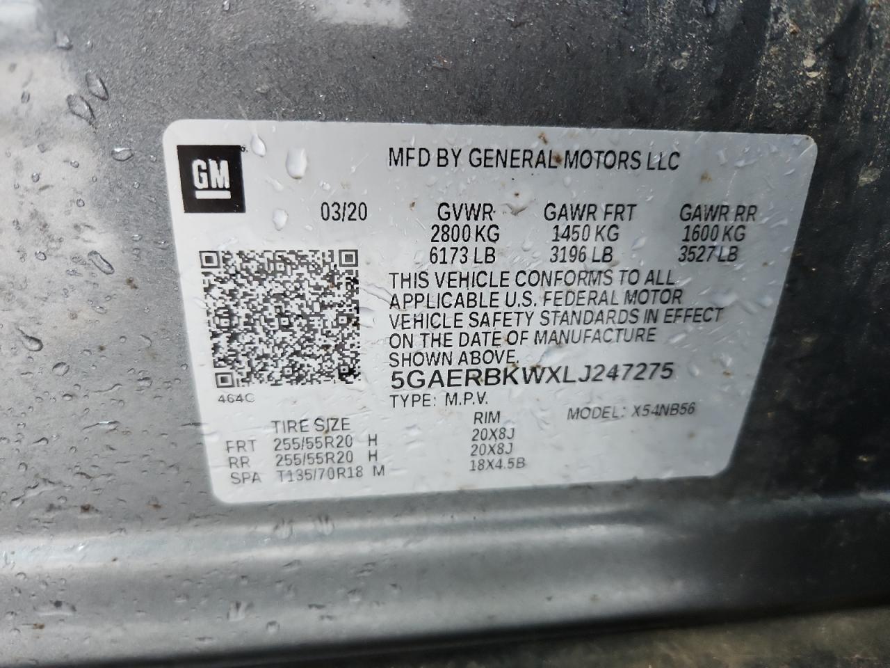Цвет СерыйЦилиндры 6VIN 5GAERBKWXLJ247275Состояние Заводится и едет (проверено)Повреждения Передняя или задняяДата аукциона 2025-10-09