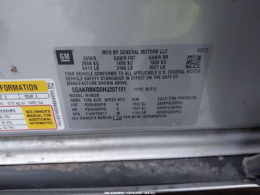 2017 BUICK ENCLAVE - 5GAKRBKD0HJ297191, цвет - Серебряный, 3.6, Бензин, Передний привод из США
