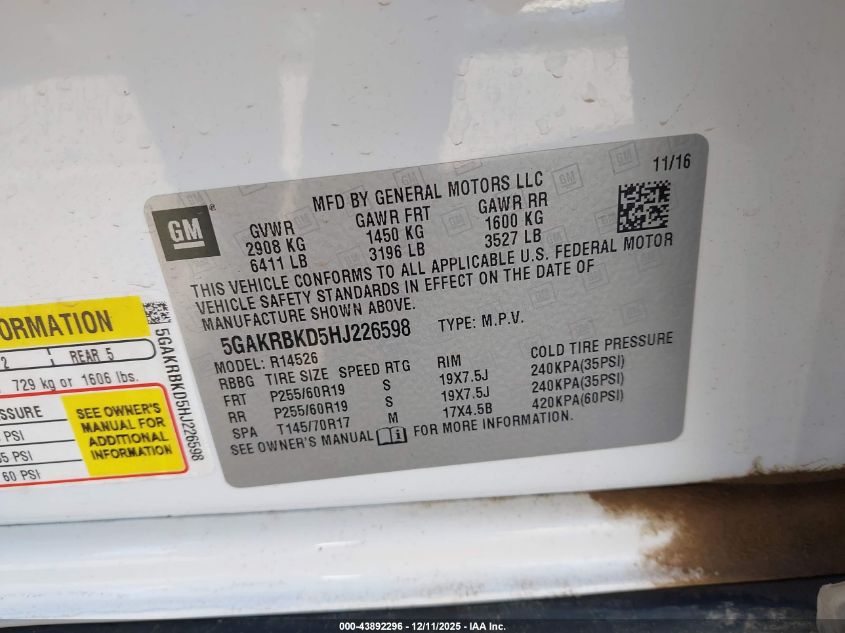 2017 BUICK ENCLAVE - 5GAKRBKD5HJ226598, цвет - Белый, 3.6, Бензин, Передний привод из США