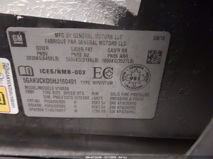 2017 BUICK ENCLAVE - 5GAKVCKD5HJ160491, цвет - Черный, 3.6, Бензин, Полный привод из США