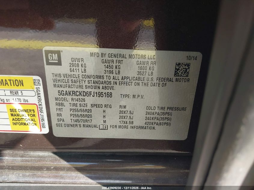 2015 BUICK ENCLAVE - 5GAKRCKD6FJ195168, цвет - Коричневий, 3.6, Бензин, Передний привод из США