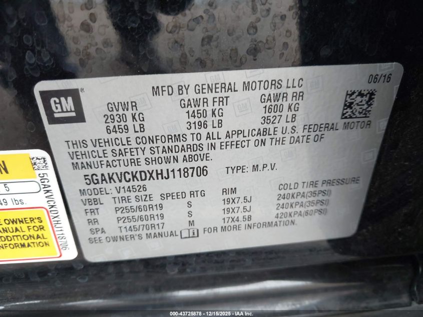 2017 BUICK ENCLAVE - 5GAKVCKDXHJ118706, цвет - Черный, 3.6, Бензин, Полный привод из США